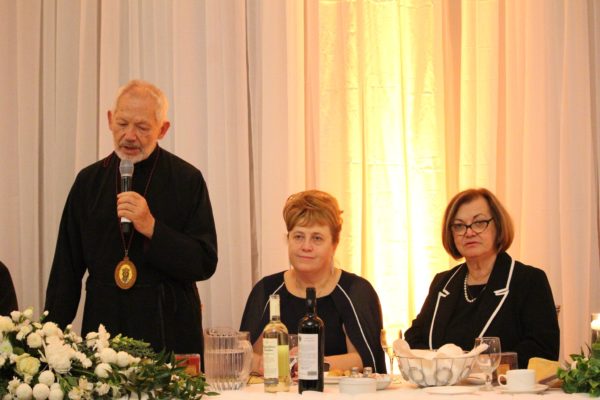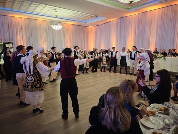 Μετά το πέρας του Μ. Εσπερινού πάνω από 560 άτομα συμμετείχαν στο δείπνο που παρέθεσε το Συμβούλιο του Καθεδρικού Ναού στο παρακείμενο Πολιτιστικό Κέντρο. Ήταν μια πραγματικά υπέροχη βραδιά με συγκινητικές ομιλίες από την κα Αναστασία Σωτηροπούλου, Πρόεδρο του Καθεδρικού Ναού, και τον Αρχιεπίσκοπο Σωτήριο. Το χορευτικό συγκρότημα νέων της Ελληνικής Κοινότητας Τορόντο διασκέδασε τους καλεσμένους με ελληνικούς παραδοσιακούς χορούς.