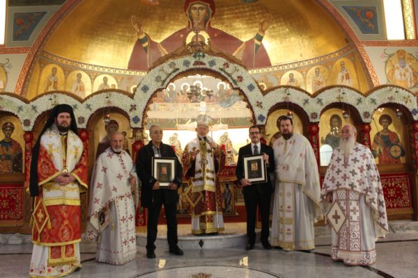 Δύο άτομα, ο κ. Σταύρος Βρετός και ο κ. Άγγελος Τούλης, αναγνωρίσθηκαν για το έργο και την ακούραστη προσφορά τους στον Καθεδρικό Ναό του Αγ. Νικολάου και ο Αρχιεπίσκοπος Σωτήριος τους απένειμε τιμητικές πλακέτες.