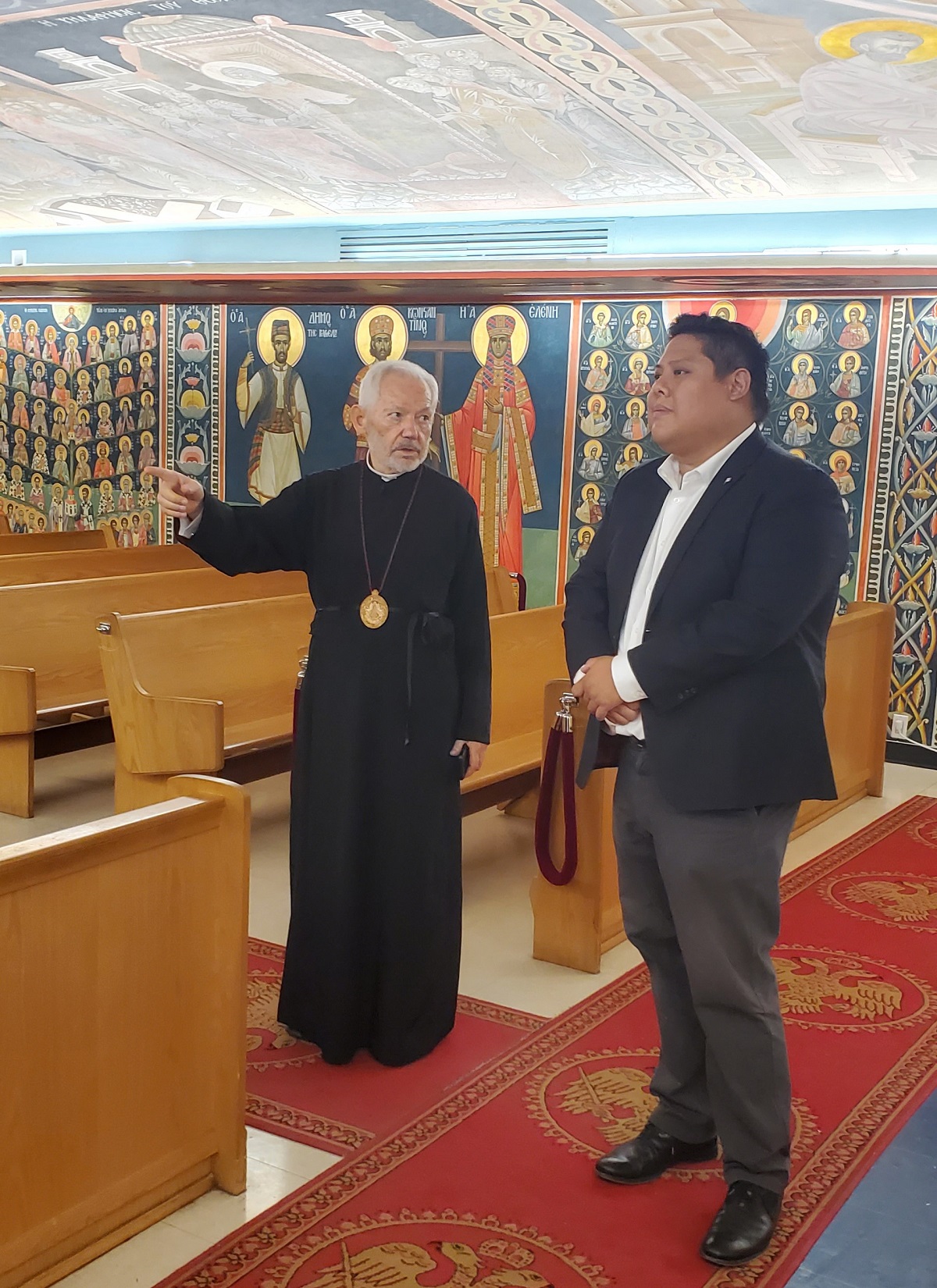 Ο Αρχιεπίσκοπος Σωτήριος προσέφερε στον κ. Βουλευτή διάφορα δώρα, βιβλία και την Ορθόδοξη Κατήχηση, την οποία ο ίδιος ο Αρχιεπίσκοπος έγραψε.