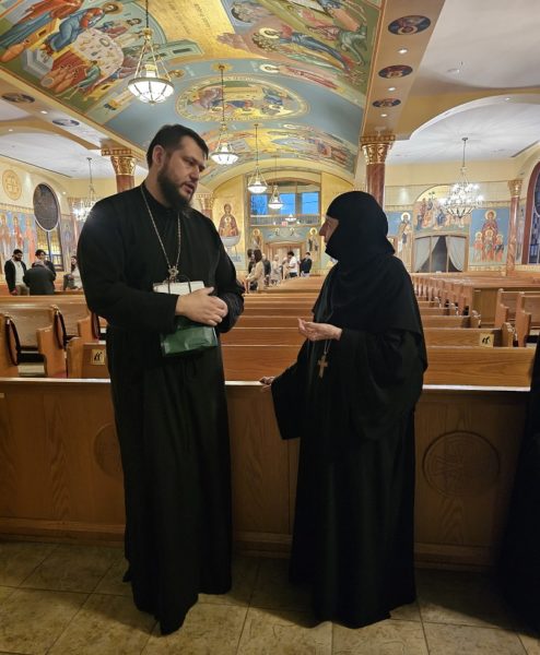 Μετά την επιτυχημένη πνευματική ομιλία προς τους νέους στον Ιερό Καθεδρικό Ναό της Αρχιεπισκοπής στις 13 Μαρτίου 2025, η Γερόντισσα Θεοξένη επισκέφθηκε τον Ιερό Ναό Μεταμορφώσεως του Σωτήρος στο Τορόντο την Παρασκευή για τη Β΄ Στάση των Χαιρετισμών προς την Υπεραγία Θεοτόκο.