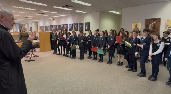 Σαράντα δύο (42) παιδιά του ημερήσιου Ελληνορθόδοξου Σχολείου «Μεταμόρφωση» πλημμύρισαν την Ι. Αρχιεπισκοπή Καναδά συνοδευόμενα από την διευθύντριά τους κα Άννα Σαραντίδη, την καθηγήτρια μουσικής κα Σοφία Γρηγοριάδη και τις δασκάλες κα Άντζελα Γκορίτσα και κα Ελένη Κρίγκου. Mε τις παιδικές φωνές τους γέμισαν την Αρχιεπισκοπή με χριστουγεννιάτικα κάλαντα και τραγούδια σε τρεις γλώσσες, ελληνικά, αγγλικά και γαλλικά.