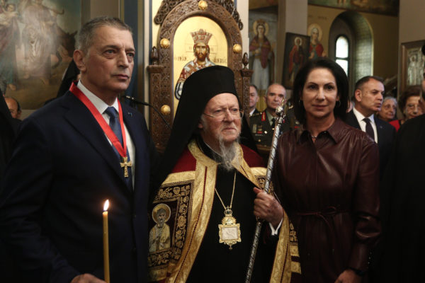 Κατά το τέλος της Θεία Λειτουργίας ο Οικουμενικός Πατριάρχης κ.κ. Βαρθολομαίος χειροθέτησε σε Άρχοντα Έπαρχο της Μ.τ.Χ.Ε. τον Πολιτικό Διοικητή του Αγίου Όρους, Αλκιβιάδη Στεφανή.