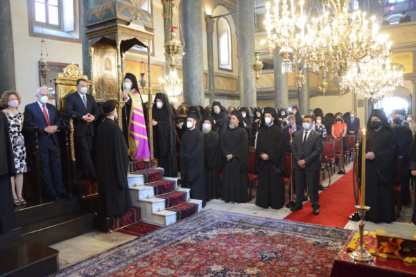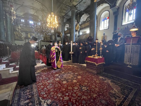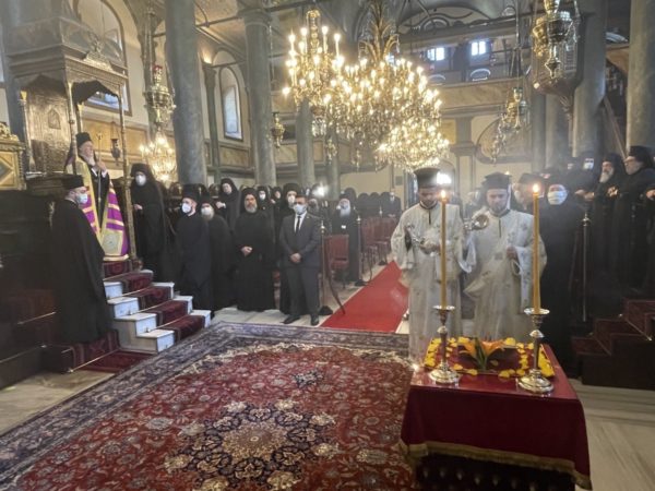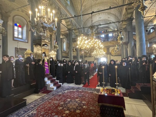 Εκκλησιάστηκαν Ιεράρχες του Οικουμενικού Θρόνου, Αντιπροσωπείες των Αυτοκεφάλων Εκκλησιών Κύπρου και Ουκρανίας, υπό τους Σεβ. Μητροπολίτες Κωνσταντίας και Αμμοχώστου κ. Βασίλειο και Ιβάνο-Φρανκίβσκ και Γαλικίας κ. Ιωάσαφ αντιστοίχως, Ηγούμενοι από το Άγιον Όρος, κληρικοί, μοναχοί και μοναχές, Άρχοντες Οφφικιάλιοι του Οικουμενικού Θρόνου, ο Υφυπουργός Εξωτερικών της Ελλάδος Εξοχ. κ. Κωνσταντίνος Βλάσης, ο Πρέσβης της Ελλάδος στην Άγκυρα Εξοχ. κ. Μιχαήλ-Χρήστος Διάμεσης, ο πρώην Υφυπουργός κ. Αντώνης Διαματάρης, οι Γενικοί Πρόξενοι της Ελλάδος και της Ουκρανίας στην Πόλη Ευγεν. κ. Γεωργία Σουλτανοπούλου και Εντιμ. κ. Oleksandr Gaman, Κοινοτικοί παράγοντες, μαθητές και μαθήτριες της Πατριαρχικής Μεγάλης του Γένους Σχολής, μαζί με τον Διευθυντή και καθηγητές τους, πιστοί από την Πόλη και προσκυνητές από το εξωτερικό.