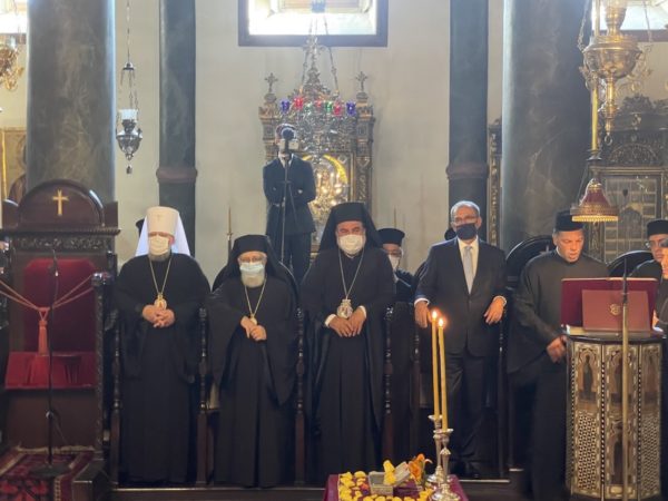 Ευγνώμονας εκφράζομεν ευχαριστίας προς τον ενταύθα Επίτροπον του Παναγίου Τάφου Ιερώτατον Αρχιεπίσκοπον Ανθηδώνος και φίλτατον αδελφόν κ. Νεκτάριον, κομιστήν των εορτίων ευχών της Σιωνίτιδος Εκκλησίας και του Μακαριωτάτου Προκαθημένου αυτής, ως και προς τον αδελφόν Μελχισεδέκ εκ της Αγιωτάτης Εκκλησίας της Γεωργίας. Ακόμη, χαιρετίζομεν εγκαρδίως την επίσημον αντιπροσωπείαν της Αγιωτάτης Εκκλησίας Κύπρου, εκ των Ιερωτάτου Μητροπολίτου Κωνσταντίας και Αμμοχώστου Βασιλείου και Οσιολογιωτάτου Αρχιγραμματέως Γεωργίου, και δι᾽ αυτής προς τον εντολέα αυτής Μακαριώτατον Αρχιεπίσκοπον Νέας Ιουστινιανής και πάσης Κύπρου, όστις ουχί διά πρώτην φοράν τιμά κατ᾽ αυτόν τον τρόπον τα ονομαστήρια του ομιλούντος.