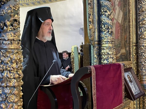 Προηγουμένως, τον Παναγιώτατο προσφώνησε εκ μέρους της Σεπτής Ιεραρχίας ο Σεβ. Μητροπολίτης Γέρων Χαλκηδόνος κ. Εμμανουήλ.