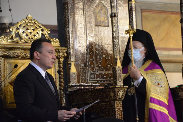 Εγκάρδιο ευχετήριο μήνυμα του Προέδρου της Ουκρανίας Εξοχ. κ. Volodymyr Zelenskyy προς τον Παναγιώτατο Οικουμενικό Πατριάρχη ανέγνωσε ο Γενικός Πρόξενος της Ουκρανίας κ.Oleksandr Gaman.