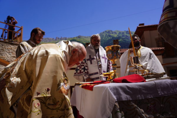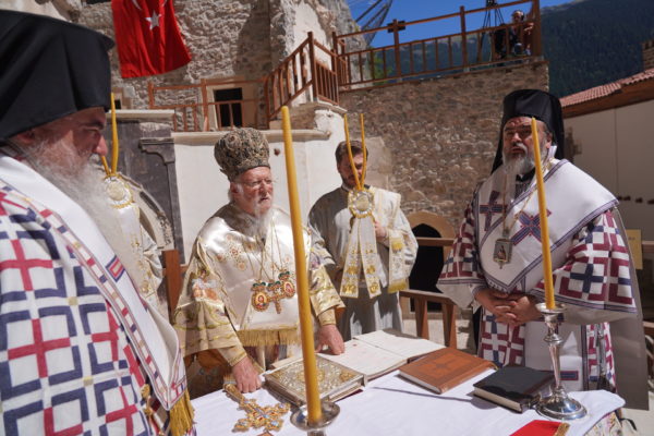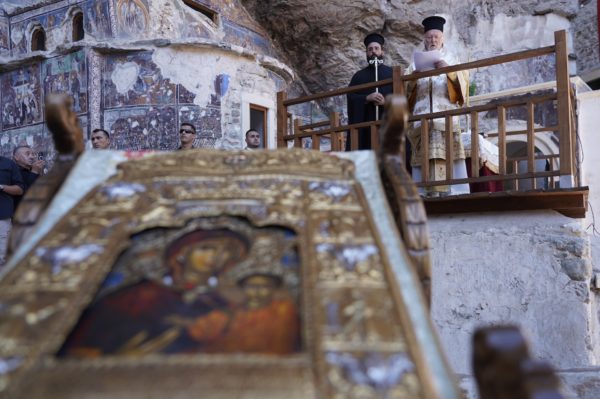Σε έντονα συγκινησιακά φορτισμένη ατμόσφαιρα τελέστηκε ανήμερα του Δεκαπενταύγουστου η Θεία Λειτουργία στην Ιερά Πατριαρχική και Σταυροπηγιακή Μονή της Παναγίας Σουμελά της Τραπεζούντας, προεξάρχοντος του Παναγιωτάτου Οικουμενικού Πατριάρχου κ.κ. Βαρθολομαίου, συμπαραστατούμενου από τους Σεβασμιωτάτους Μητροπολίτες Νέας Κρήνης και Καλαμαριάς κ. Ιουστίνο και Σμύρνης κ. Βαρθολομαίο.
