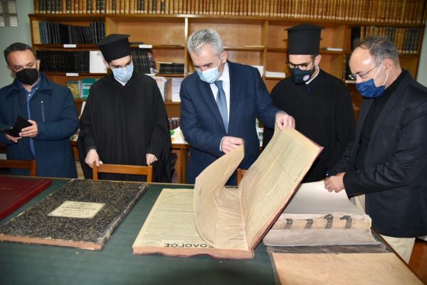 Η αντιπροσωπεία της ΔΣΟ επισκέφθηκε τις εγκαταστάσεις της Θεολογικής Σχολής, και ξεναγήθηκε στην εμβληματική της βιβλιοθήκη, όπου φυλάσσονται παλαίτυπα, με το παλαιότερο, όπως ειπώθηκε, να χρονολογείται από το 1496.