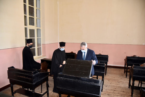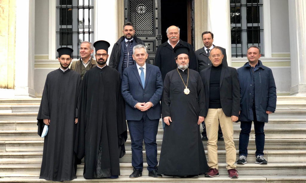Η αντιπροσωπεία της ΔΣΟ επισκέφθηκε τις εγκαταστάσεις της Θεολογικής Σχολής, και ξεναγήθηκε στην εμβληματική της βιβλιοθήκη, όπου φυλάσσονται παλαίτυπα, με το παλαιότερο, όπως ειπώθηκε, να χρονολογείται από το 1496.