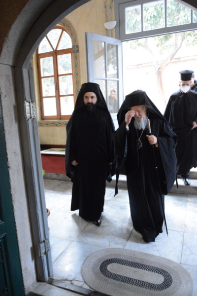 Στη συνέχεια, ο Παναγιώτατος ευλόγησε την εόρτια τράπεζα που προσφέρθηκε στην Κοινοτική Αίθουσα.