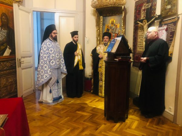Στο παρακείμενο της Αίθουσας Τελετών της Σχολής παρεκκλήσιο της Παναγίας της Καμαριωτίσσης τελέστηκε σήμερα, Τρίτη 18 Ιανουαρίου 2022, ο εόρτιος Όρθρος και η Θεία Λειτουργία επί τη ιερά μνήμη των Αγίων Αθανασίου του Μεγάλου και Κυρίλλου, Πατριαρχών Αλεξανδρείας, χοροστατούντος του Καθηγουμένου, Θεοφιλεστάτου Επισκόπου Αραβισσού κ. Κασσιανού.