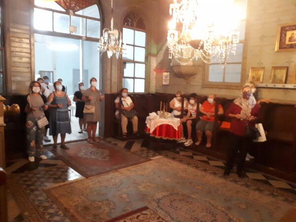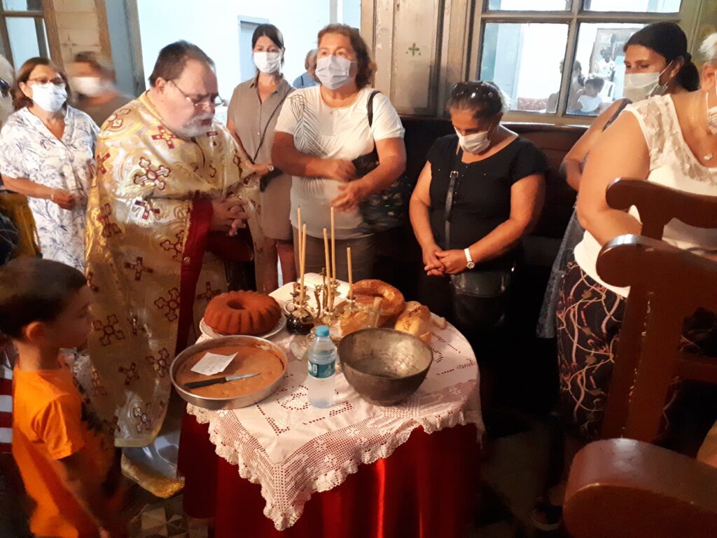 Μετά το πέρας της Θείας Λειτουργίας ευλογήθηκαν οι πίτες που έφεραν πιστοί από το νησί και από την Πόλη προς τιμήν του Αγίου.