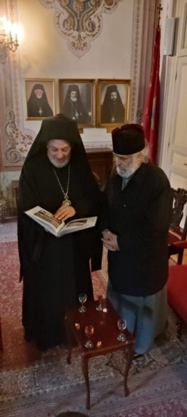 Οι επισκέπτες έγιναν δεκτοί από τον Καθηγούμενο, Θεοφιλέστατο Επίσκοπο Αραβισσού κ. Κασσιανό, ο οποίος τους καλωσόρισε στο Μέγα Συνοδικό της Σχολής, αναφερόμενος στην ιστορία και την προσφορά της. Ακολούθως, ξεναγήθηκαν στο ναΰδριο της Αγίας Τριάδος, στις παλαιές αίθουσες διδασκαλίας και την ιστορική Βιβλιοθήκη της Σχολής, ενώ παρακάθησαν στην προς τιμήν τους παρατεθείσα τράπεζα.
