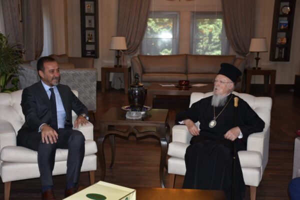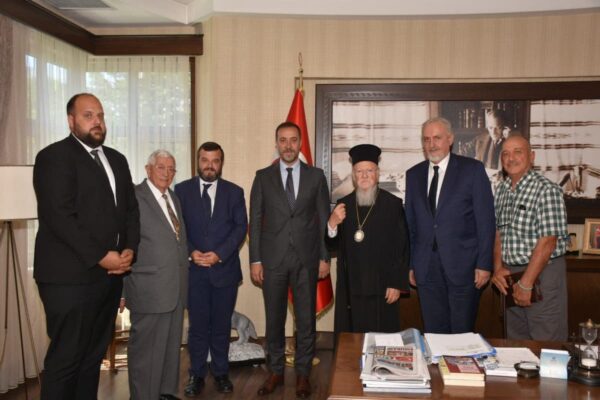 Εθιμοτυπική επίσκεψη στον νέο Δήμαρχο Σηλυβρίας Βολκάν Γιλμάζ πραγματοποίησε σήμερα, Τετάρτη, 7 Αυγούστου, ο Οικουμενικός Πατριάρχης Βαρθολομαίος, συνοδευόμενος από τον Μητροπολίτη Γαλλίας Εμμανουήλ, τον Μητροπολίτη Σηλυβρίας Μάξιμο, και τον Άρχοντα Μ.Πρωτέκδικο της Αγίας του Χριστού Μεγάλης Εκκλησίας Δημήτριο Αθανάσωφ.