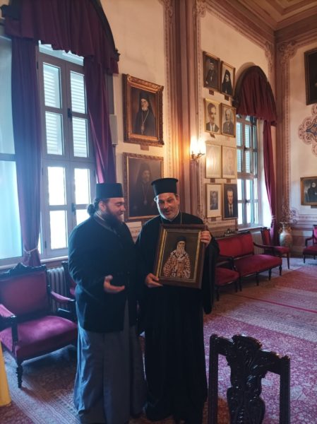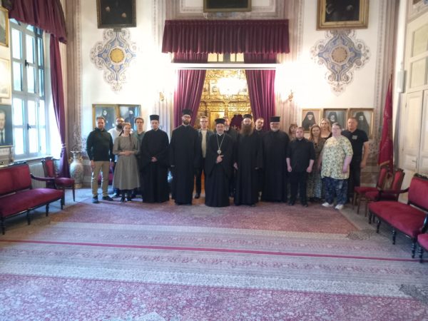 Οι Καθηγητές και οι φοιτητές έγιναν δεκτοί στο Μέγα Συνοδικό της Σχολής από τον Καθηγούμενο, Θεοφιλέστατο Επίσκοπο Αραβισσού κ. Κασσιανό, ο οποίος τους καλωσόρισε, μιλώντας τους για την ιστορία και την προσφορά της Σχολής στην Ορθόδοξο Εκκλησία και τον διαχριστιανικό κόσμο.