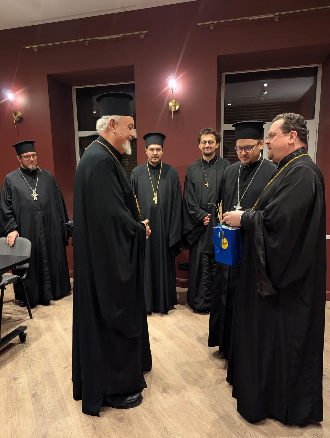 Μετά τις συναντήσεις με εκπροσώπους του κράτους και της Εκκλησίας, ο Μητροπολίτης κ. Εμμανουήλ συναντήθηκε με τον κλήρο της Εξαρχίας της Λιθουανίας. Κατά τη διάρκεια της συνάντησης, συζητήθηκαν τρέχοντα ζητήματα που αφορούν τη ζωή των Λιθουανών Ορθόδοξων Χριστιανών και μεταφέρθηκε η ευλογία του Οικουμενικού Πατριάρχη στην Εξαρχία και στους πιστούς. Οι ιερείς επίσης ευχήθηκαν στον Μητροπολίτη για τα γενέθλιά του.