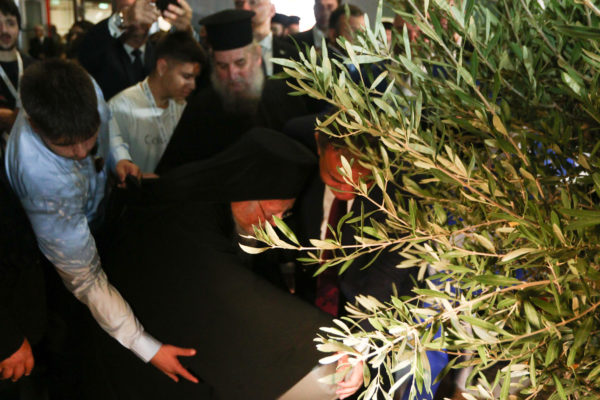 Νωρίτερα το απόγευμα ο Παναγιώτατος έφτασε από τη Θεσσαλονίκη στην Αθήνα, όπου στο αεροδρόμιο τον υποδέχθηκε ο Υφυπουργός Εξωτερικών Γιώργος Κώτσηρας εκπροσωπώντας την Ελληνική Κυβέρνηση.