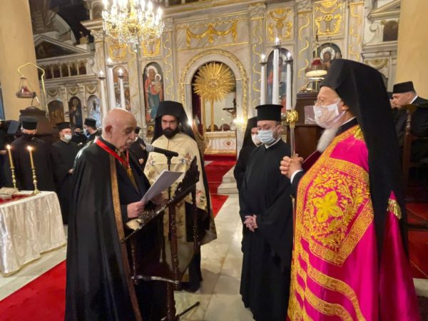 Περαίνοντες τον λόγον, συγχαίρομεν υμίν ολοθύμως, Εντιμολογιώτατε, διά την ανύψωσίν σας εις Άρχοντα της Κωνσταντινουπολίτιδος Εκκλησίας και δη με τον συνάδοντα τη ταυτότητι και τη προσφορά υμών, ως μύστου της νομικής Επιστήμης και υπερασπιστού του Δικαίου, τίτλον του Άρχοντος Νομοδότου, και καλωσορίζομεν εις την Πόλιν των Πόλεων την έντιμον συνοδείαν σας, ευχαριστούντες δε τους παρόντας και συμπροσευχομένους εις την εόρτιον ταύτην ιεράν σύναξιν τιμιωτάτους αδελφούς και τα προσφιλέστατα τέκνα, επικαλούμεθα επί πάντας υμάς, πρεσβείαις της αγιοπρώτου Παναγίας της Βαλουκλιώτισσας και των Αγίων Αποστόλων Βαρθολομαίου και Βαρνάβα, την χάριν και το έλεος του φιλανθρώπου και δικαιοκρίτου Θεού. Άξιος!