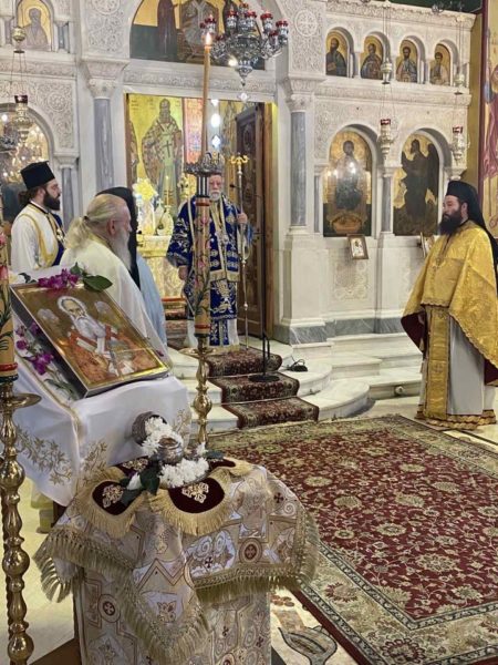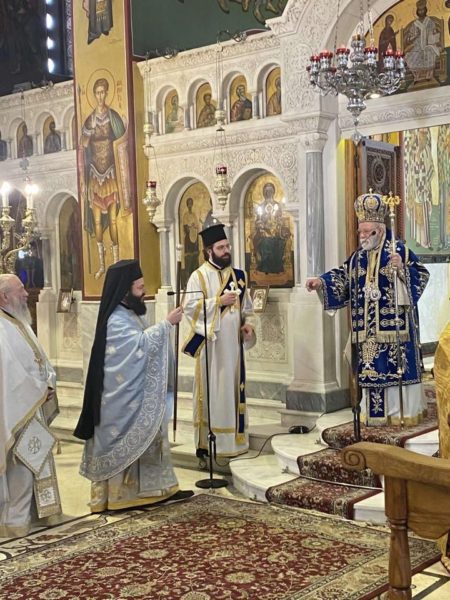 Στη συνέχεια ο κ. Μακάριος δέχθηκε τις υιικές ευχές του Σεβασμιωτάτου Μητροπολίτου Νέας Ιωνίας κ. Γαβριήλ καθώς και των εφημερίων του Μητροπολιτικού Ναού.