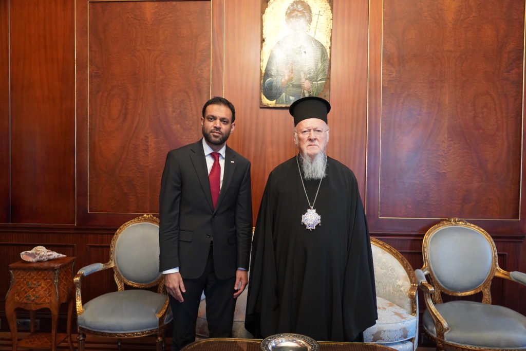 Επίσκεψη στην Έδρα του Οικουμενικού Πατριαρχείου, στο Φανάρι, πραγματοποίησε το απόγευμα της Τρίτης, 13 Σεπτεμβρίου, ο Πρέσβης κ. Rashad Hussain, επικεφαλής της υπηρεσίας του Υπουργείου Εξωτερικών των ΗΠΑ για θέματα διεθνούς θρησκευτικής ελευθερίας.