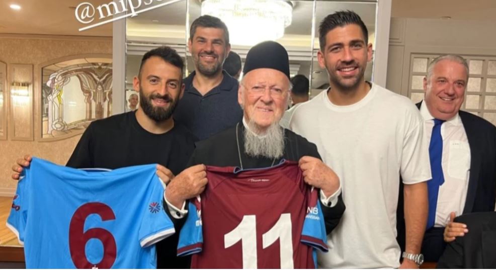 Ο Παναγιώτατος Οικουμενικός Πατριάρχης κ.κ. Βαρθολομαίος δέχθηκε την επίσκεψη των δύο διεθνών ποδοσφαιριστών της Τραμπζονσπόρ, Τάσου Μπακασέτα και Μανώλη Σιώπη την Κυριακή 14 Αυγούστου 2022 στο ξενοδοχείο της Τραπεζούντας, όπου κατέλυσε η Πατριαρχική αντιπροσωπεία για την τέλεση της Θείας Λειτουργίας στην ιστορική Ιερά Μονή Σουμελά επί τη εορτή της Κοιμήσεως της Θεοτόκου.