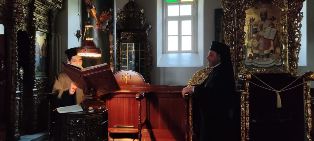 Τελέστηκε σήμερα, 28 Μαρτίου 2021, το απόγευμα ο Γ’ Κατανυκτικός Εσπερινός της Αγίας και Μεγάλης Τεσσαρακοστής στο ναϋδριο της Θεολογικής Σχολής της Χάλκης, χοροστατούντος από του παραθρονίου του Καθηγουμένου, Θεοφιλεστάτου Επισκόπου Αραβισσού κ. Κασσιανού.