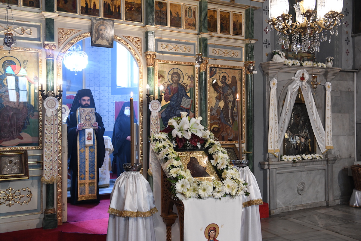 Προηγουμένως, τον Παναγιώτατο καλωσόρισε ο Θεοφιλ. Επίσκοπος Αλικαρνασσού κ. Αδριανός, ο οποίος αναφέρθηκε στο πρόσωπο της Υπεραγίας Θεοτόκου.