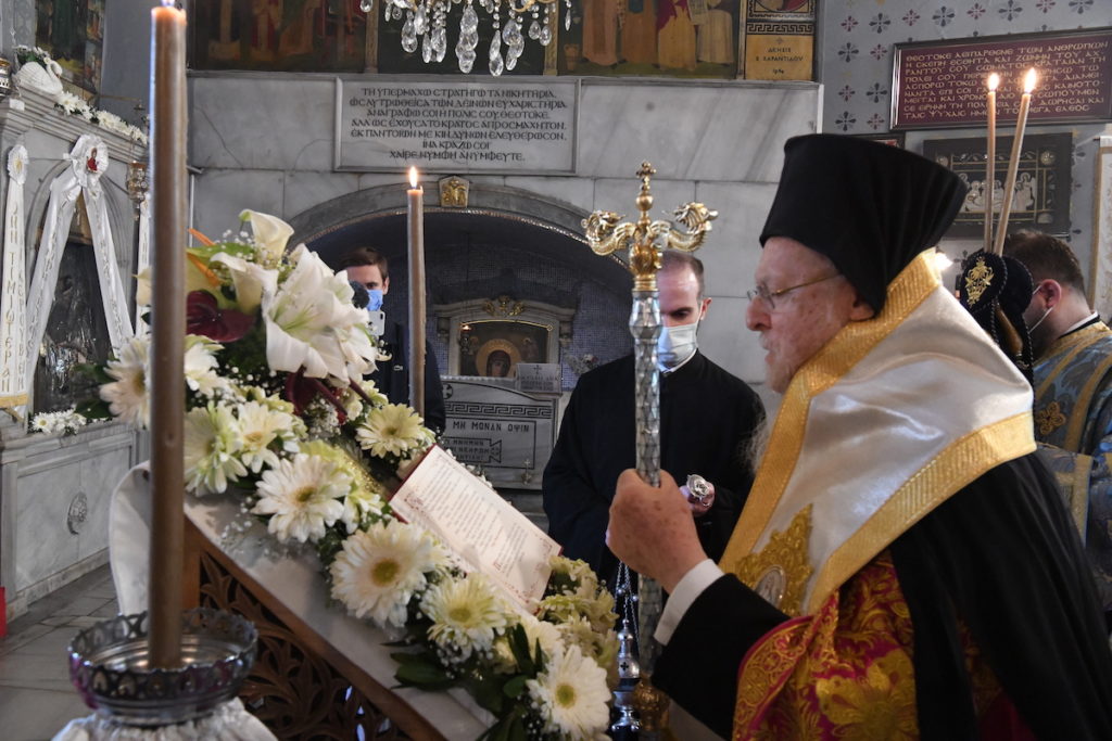 Η Α.Θ. Παναγιότης ο Οικουμενικός Πατριάρχης κ.κ. Βαρθολομαίος, χοροστάτησε σήμερα, Παρασκευή, 2 Απριλίου 2021, το πρωί, κατά παλαιά παράδοση, στο Ιερό Αγίασμα της Παναγίας των Βλαχερνών, στην Ι. Ακολουθία της Γ’ Στάσης των Χαιρετισμών.
