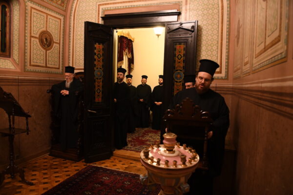 Το πρωί και το απόγευμα τελούμε όλοι μαζί τον Ορθρο και τον Εσπερινό στον Πατριαρχικό Ναό, στον οποίο οι κληρικοί της Αυλής έψαλαν με την καρδιά τους τα δύσκολα ψαλτικά μαθήματα όλες τις άγιες ημέρες, με τον Πατριάρχη και Ηγούμενο του Μεγάλου Μοναστηριού της Ορθοδοξίας να χοροστατεί και να ευλογεί προσευχητικά από το Ιερό μας Κέντρο και ‘εκ κέντρου καρδίας’ όλο τον κόσμο, όλη την εμπερίστατη οικουμένη, τον κάθε συνάνθρωπό μας.