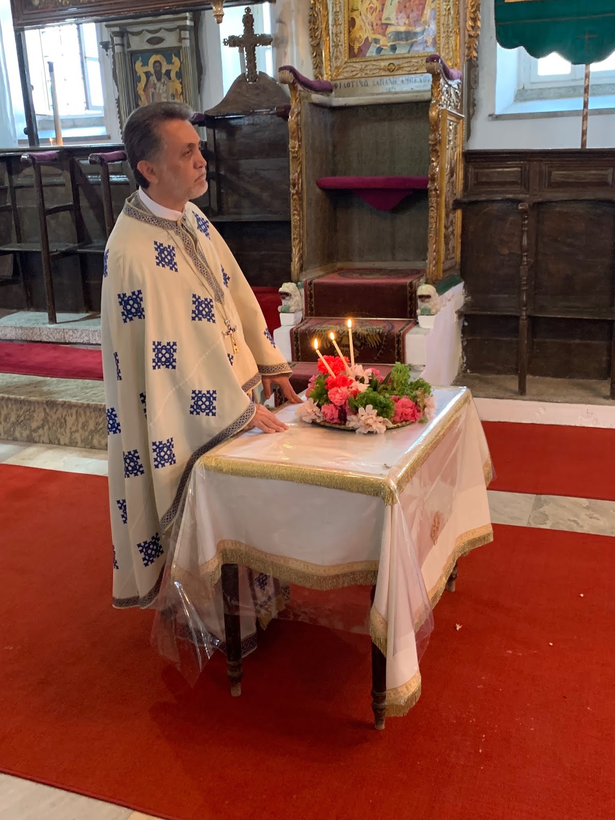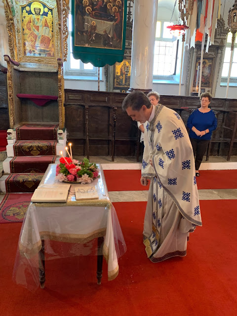 Την Θ. Λειτουργία τέλεσε ο Αρχιμανδρίτης Ευδόκιμος Καρακουλάκης, ο οποίος διηκόνησε τους θερινούς μήνες την Κοινότητα της Τενέδου.