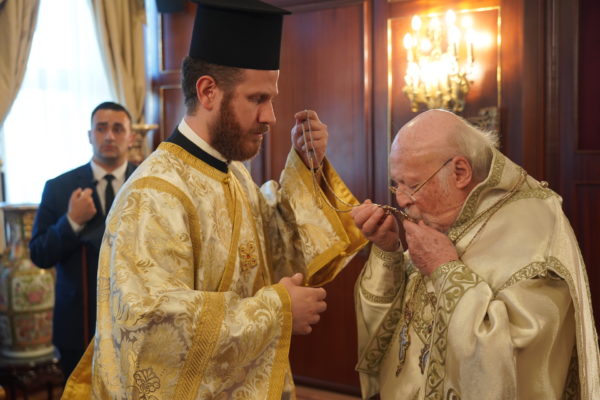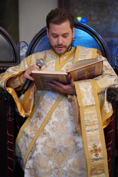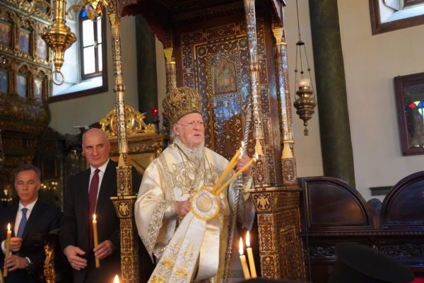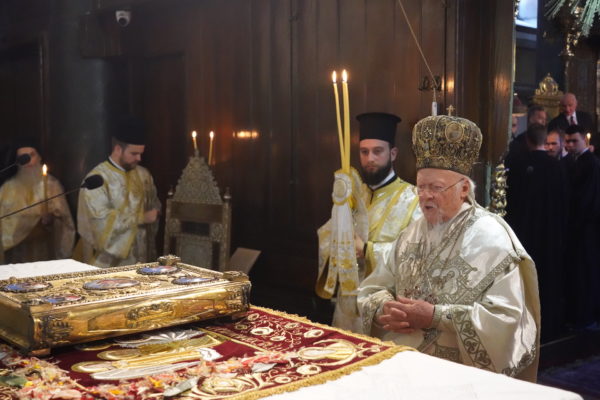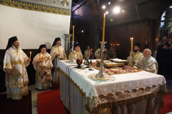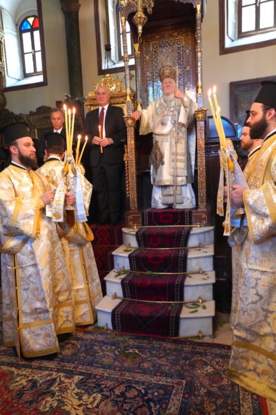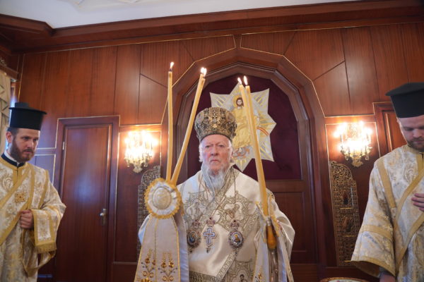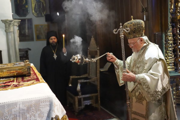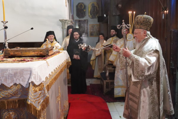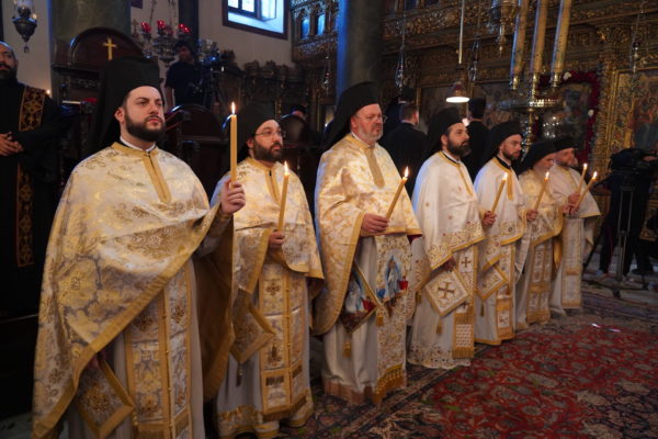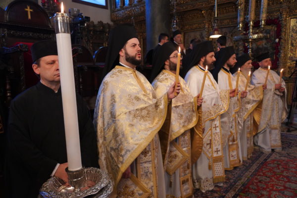 Ο Παναγιώτατος Οικουμενικός Πατριάρχης κ.κ. Βαρθολομαίος, αφού ενδύθηκε με τα Αρχιερατικά άμφια στην Αίθουσα του Θρόνου, περιστοιχούμενος από τους Αρχιερείς Σεβασμιωτάτους Μητροπολίτες Βιζύης κ. Αθηναγόρα, Φιλαδελφείας κ. Μελίτωνα, Μυριοφύτου και Περιστάσεως κ. Ειρηναίο, Ικονίου κ. Θεόληπτο, Σελευκείας κ. Θεόδωρο, και τον Θεοφιλέστατο Επίσκοπο Τιβεριουπόλεως κ. Τύχωνα, Ιεράρχη της Εκκλησίας της Βουλγαρίας, καθώς και από τους κληρικούς της Πατριαρχικής Αυλής, κατήλθε στον Πατριαρχικό Ναό και προέστη του Εσπερινού.