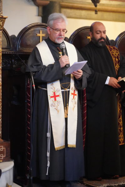 Ο Πατριάρχης, από το Σύνθρονο, ανέγνωσε το Ιερό Ευαγγέλιο στα Ελληνικά και ακολούθως αυτό διαβάστηκε, από Ιεράρχες και κληρικούς του Θρόνου, καθώς και εκπροσώπους άλλων Χριστιανικών κοινοτήτων της Πόλεως, σε διάφορες γλώσσες.