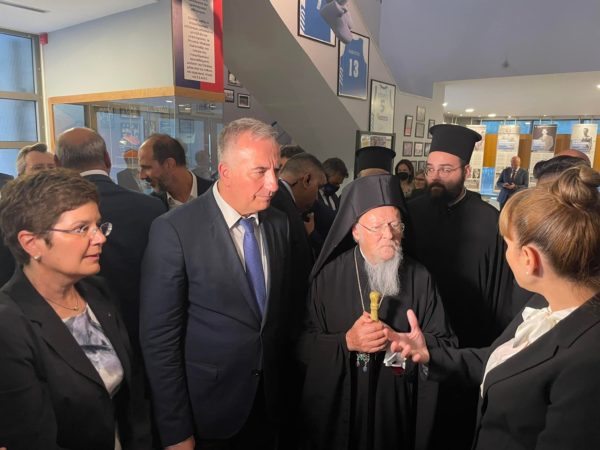 Τον κ.κ. Βαρθολομαίο συνόδευαν ιεράρχες του Οικουμενικού θρόνου, ο υφυπουργός Εσωτερικών (Μακεδονίας – Θράκης) Σταύρος Καλαφάτης, ενώ τον υποδέχθηκαν μπροστά στην είσοδο των αθλητικών της εγκαταστάσεων, η πρόεδρος Ελένη Αθανασιάδου και το διοικητικό συμβούλιο της, καθώς και νεολαίοι και μικρά παιδιά, μέλη της ΧΑΝΘ, με λουλούδια στα χέρια, τα οποία συνομίλησαν και φωτογραφήθηκαν μαζί του.