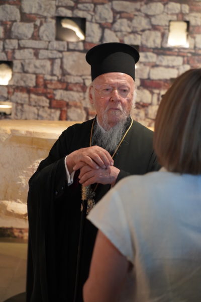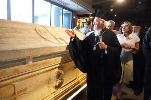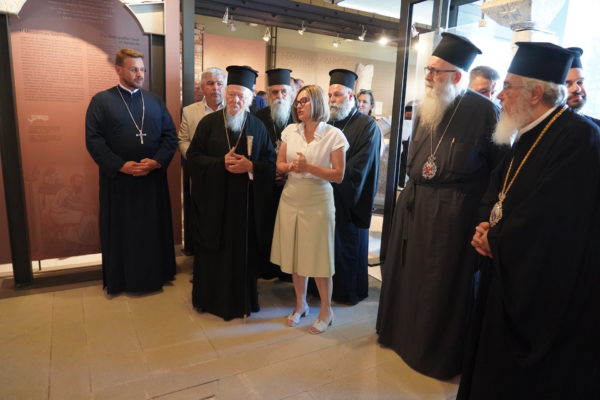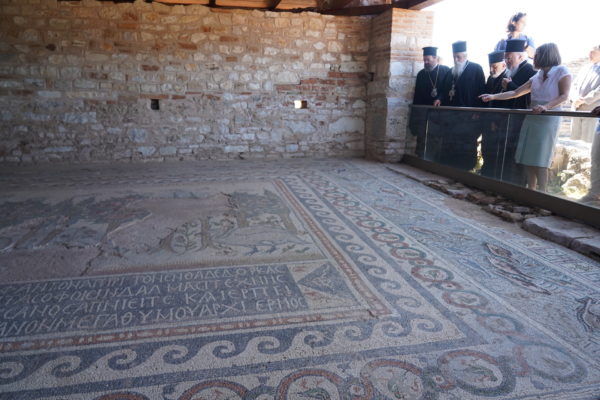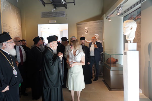 Το πρωί της ίδιας ημέρας, ο Παναγιώτατος, επισκέφθηκε το Αρχαιολογικό Μουσείο της Νικοπόλεως και ακολούθως ξεναγήθηκε στην αρχαία Νικόπολη και συγκεκριμένα στις τοποθεσίες όπου η αρχαιολογική σκαπάνη έφερε στο φως τα ερείπια των επιβλητικών παλαιοχριστιανικών Βασιλικών. Στην Παλαιοχριστιανική Βασιλική Α’ Δομετίου, τον Παναγιώτατο ενημέρωσε η Αρχαιολόγος και συμπατριώτισσά του, από την Ίμβρο, Δρ. Ευγενία Χαλκιά, Επίτιμη Έφορος Αρχαιοτήτων, η οποία έχει πραγματοποιήσει ανασκαφές στο σημείο και γενικότερα στη Νικόπολη. Κατά τη διάρκεια της επισκέψεώς του στον αρχαιολογικό χώρο, ο Πατριάρχης είχε την ευκαιρία να συνομιλήσει με νεαρούς φοιτητές αρχαιολογίας από τις ΗΠΑ που εργάζονται στις ανασκαφές, στο πλαίσιο εκπαιδευτικού προγράμματος.