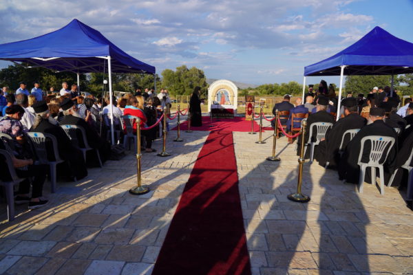 Αμέσως μετά, ο Παναγιώτατος, με την τιμία Συνοδεία του, μετέβη στην Ιερά Μονή Προφήτου Ηλιού Ηλιοβουνίων (Φλάμπουρα), όπου τον υποδέχθηκαν με θερμές εκδηλώσεις σεβασμού και τιμής ο Ηγούμενος Πανοσιολ. Αρχιμανδρίτης κ. Εφραίμ και η περί αυτόν Αδελφότητα, μαζί με μοναχές από γειτονική γυναικεία Μονή, παρουσία πλήθους πιστών.