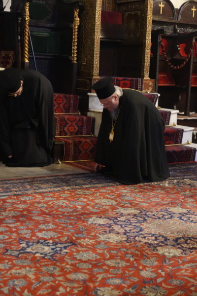 Το πρωί της ίδιας ημέρας ο Παναγιώτατος χοροστάτησε κατά τη Θεία Λειτουργία των Προηγιασμένων Τιμίων Δώρων.