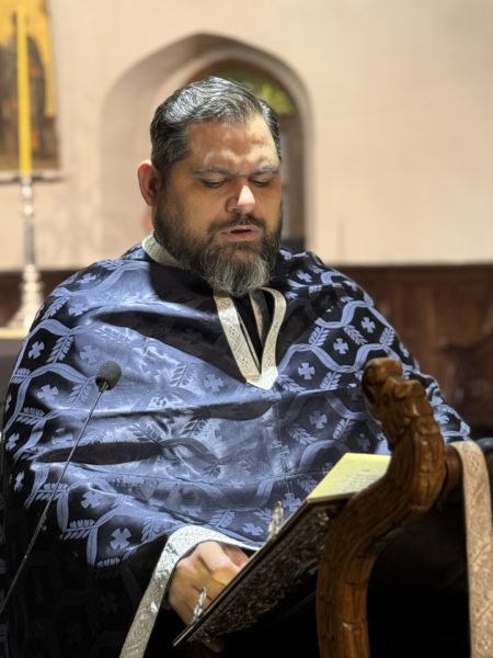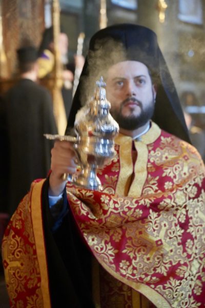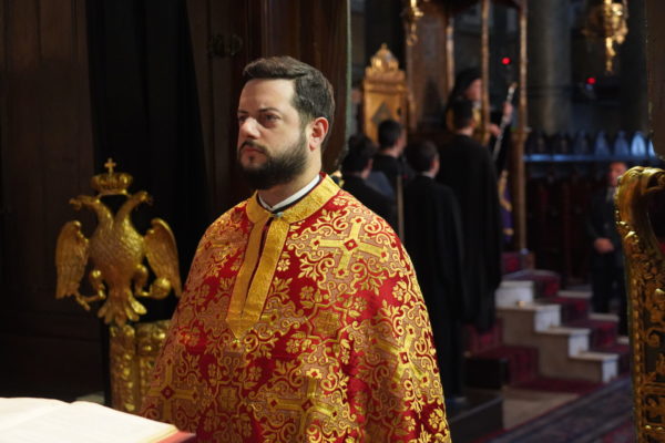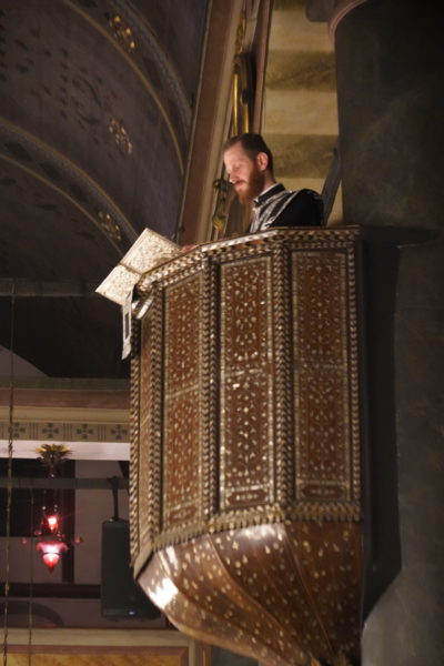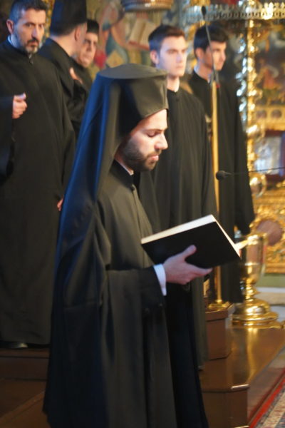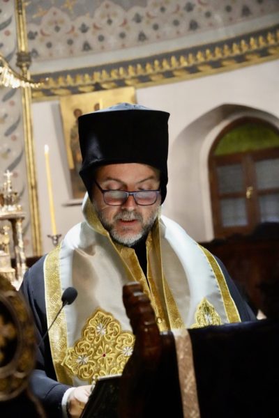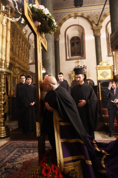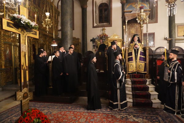 Το πρωί της Μεγάλης Πέμπτης, ο Μέγας Πρωτοσύγκελλος τέλεσε, στον Πάνσεπτο Πατριαρχικό Ναό, τον Εσπερινό και τη Θεία Λειτουργία του Μεγάλου Βασιλείου, συμπαραστατούμενος από τον Τριτεύοντα κ. Βαρνάβα.