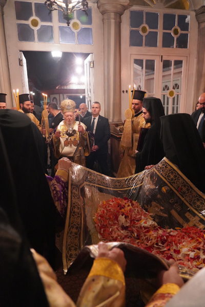 Σε κατανυκτική ατμόσφαιρα τελέστηκε την Μεγάλη Παρασκευή, στον Π. Πατριαρχικό Ναό, η Ακολουθία του Επιταφίου Θρήνου, προεξάρχοντος της Α.Θ. Παναγιότητος του Οικουμενικού Πατριάρχου κ.κ. Βαρθολομαίου.