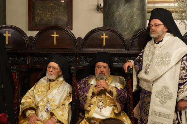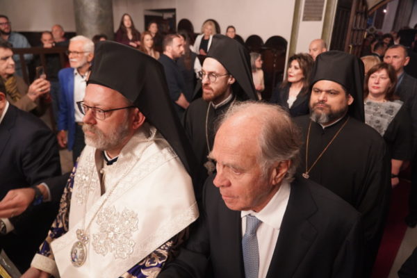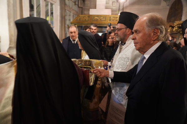 Παρέστησαν συμπροσευχόμενοι Άρχοντες Οφφικιάλιοι της Μ.τ.Χ.Ε. με επί κεφαλής τον Μ. Λογοθέτη κ. Θεόδωρο Αγγελόπουλο, τον οποίο συνόδευε η σύζυγός του κ. Γιάννα Αγγελοπούλου, οι Πρόξενοι κ. Θεόφιλος Γεωργάκης, εκ προσώπου του Γενικού Προξένου της Ελλάδος, και κ. Hanna Tischenko, εκ προσώπου του Γενικού Προξένου της Ουκρανίας, καθώς και πυκνό εκκλησίασμα.