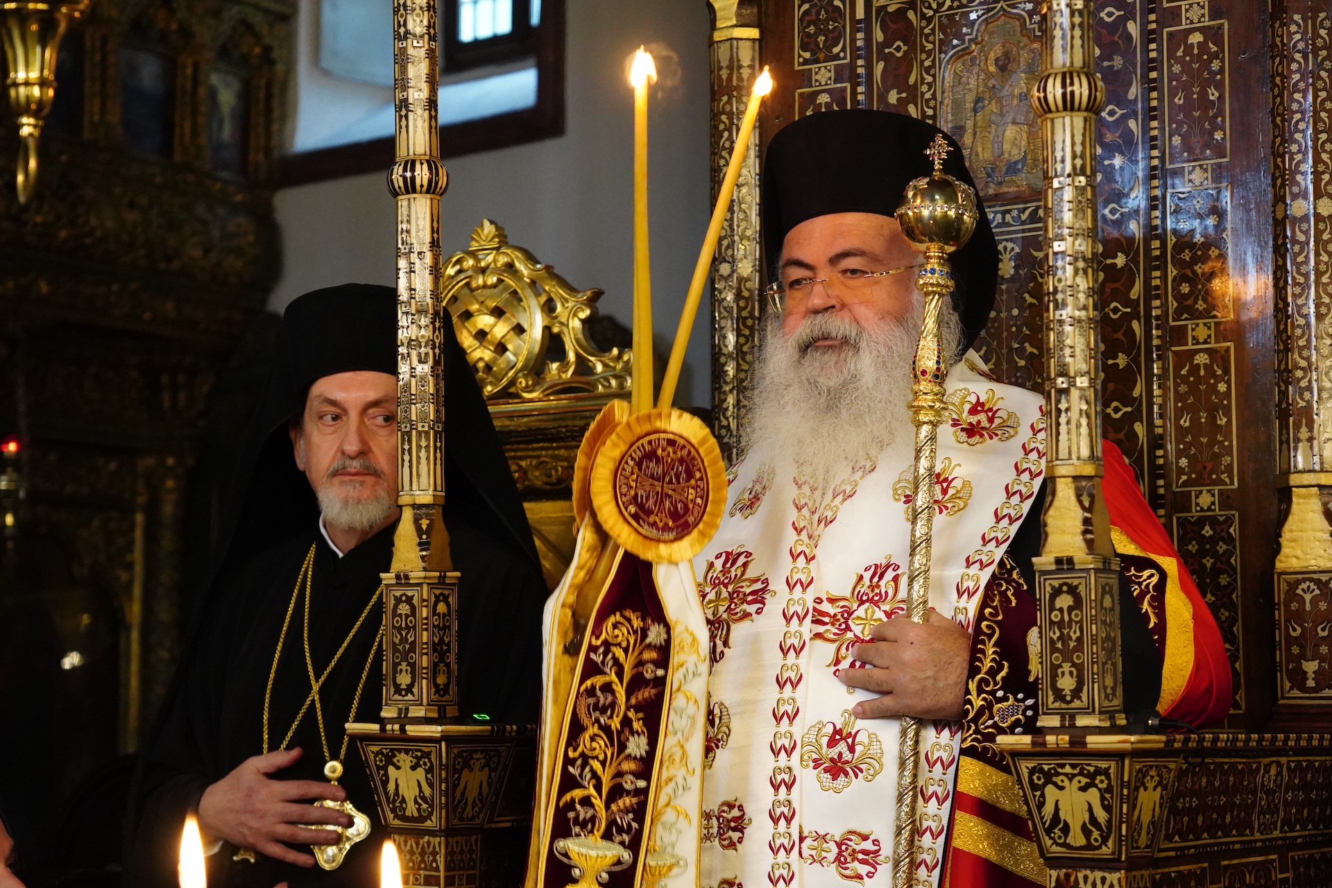 “Προσδοκούμε και στο συλλείτουργό μας, αλλά και στις συνομιλίες που θα έχουμε μαζί σας, και ελπίζουμε να συμβάλλουμε με την δική σας καθοδήγηση, με την δική σας πείρα, στην άρση αυτών των δυσκολιών που συναντά η Ορθόδοξη Εκκλησία. Μέσα σε έναν κόσμο που κινδυνεύει από τον αθεϊσμό, από τόσες άλλες ξένες θρησκείες, είναι δύσκολο και απαράδεκτο εμείς ο Ορθόδοξοι να μην ομονοούμε. Και εμείς αναγνωρίζουμε και τα δίκαια του Οικουμενικού Πατριαρχείου και γι’ αυτό είμαστε εδώ, και θέλουμε να συμβάλλουμε όσο μπορούμε και στην κατοχύρωση αυτών των δικαίων, αλλά και στην ενότητα όλων των Ορθοδόξων. Η Εκκλησία της Κύπρου θα είναι πάντοτε στο πλευρό σας και αυτό να το ξέρετε”, υπογράμμισε ο Μακ. Αρχιεπίσκοπος Κύπρου κ. Γεώργιος.