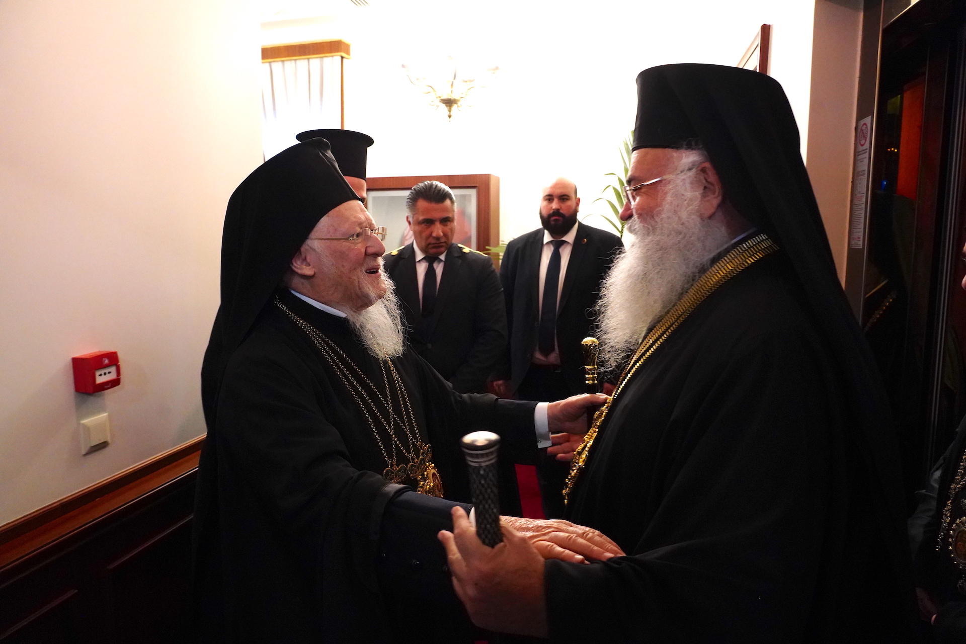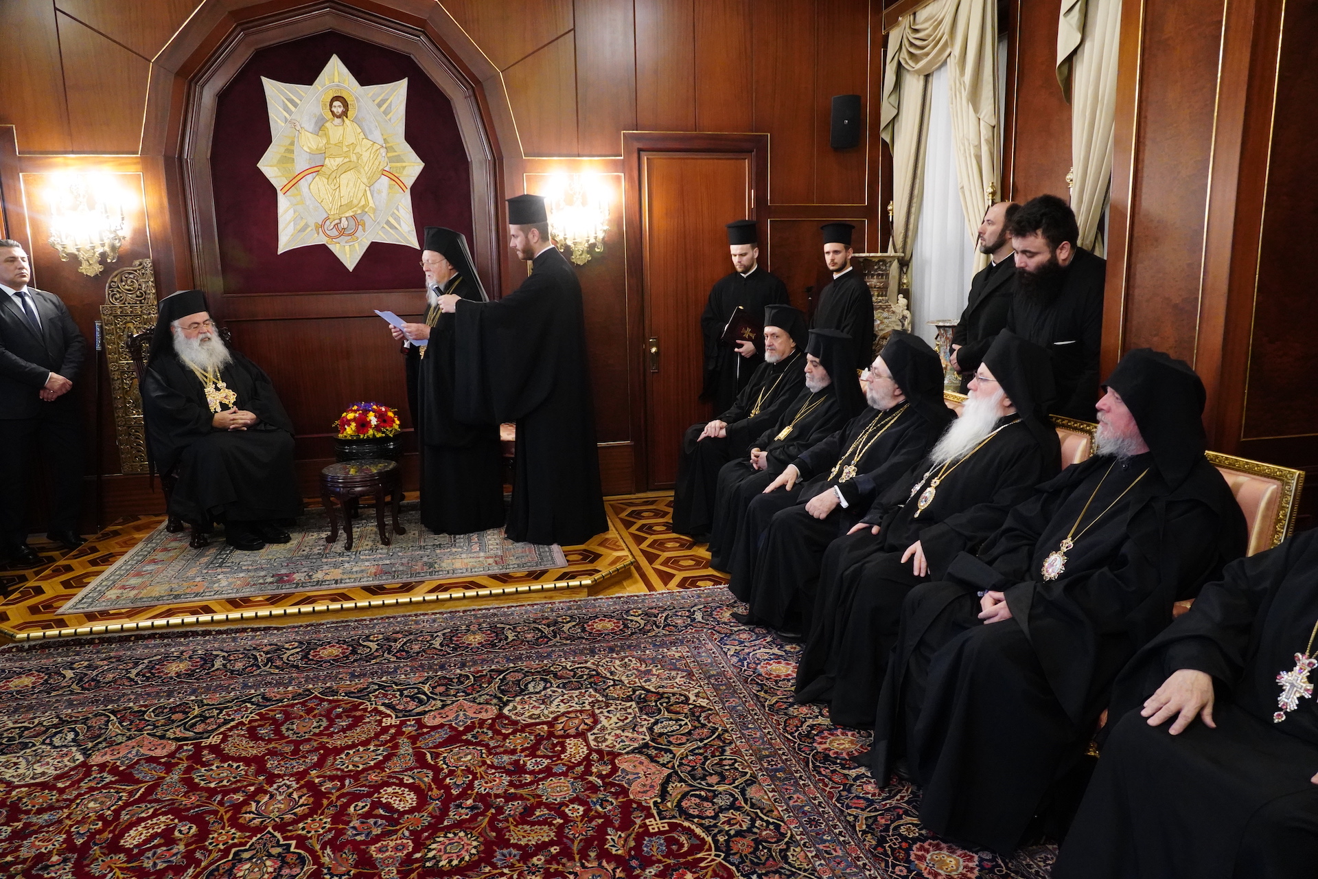 Περαίνοντες τον λόγον, απευθύνομεν προς την Υμετέραν Μακαριότητα το «Ως ευ παρέστητε!» εις την Πόλιν των Πόλεων, διά να συνεορτάσωμεν, να συλλειτουργήσωμεν, να συζητήσωμεν, να δοξάσωμεν τον πάνδωρον Κύριον και Θεόν των Πατέρων ημών, τον «ποιούντα θαυμάσια μόνον». Είναι μεγάλη η χαρά της ημών Μετριότητος και πάντων των περί ημάς διά την παρουσίαν Υμών και της συνοδείας Σας εν Φαναρίω, Μακαριώτατε και πολυτίμητε αδελφέ. Ο Χριστός εν τω μέσω ημών ην, εστί και έσται!”
