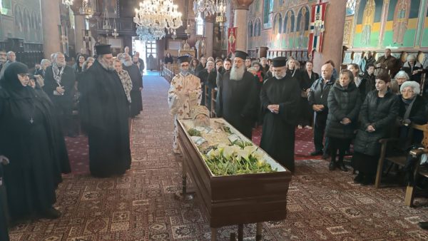 Το πρωί τελέσθηκε στον ίδιο Ιερό Ναό, ο Όρθος και η Αρχιερατική Εξόδιος Θεία Λειτουργία, προεξάρχοντος του Θεοφιλεστάτου Επισκόπου Στρατονικείας κ. Στεφάνου, τον οποίο πλαισίωσε πλειάδα κληρικών.