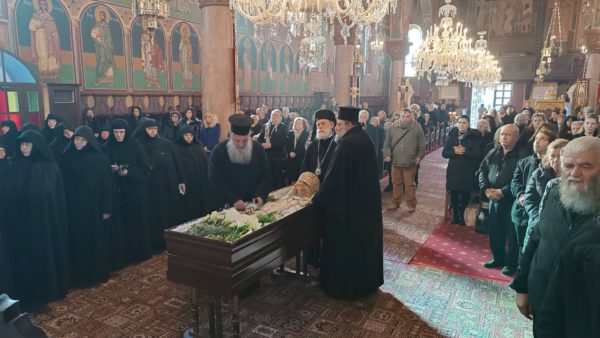 Μετά το πέρας της Ακολουθίας, εν πομπή οι Ιεράρχες ανεχώρησαν για την Ιερά Μονή Αρχαγγέλου Μιχαήλ Θαρρίου, όπου στις 15:00 θα τελεθεί η ταφή.