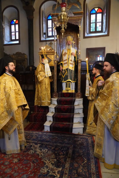 Εκκλησιάστηκαν οι Αρχιερείς Σεβασμιωτάτοι Καλλιουπόλεως και Μαδύτου κ. Στέφανος, Κυδωνιών κ. Αθηναγόρας, Φθιώτιδος κ. Συμεών, Προύσης κ. Ιωακείμ, Φλωρίνης, Πρεσπών και Εορδαίας κ. Ειρηναίος, και ο Θεοφιλέστατατος Αλικαρνασσού κ. Αδριανός, Άρχοντες Οφφικιάλιοι της Μ.τ.Χ.Ε., και πιστοί από την Πόλη και το εξωτερικό.