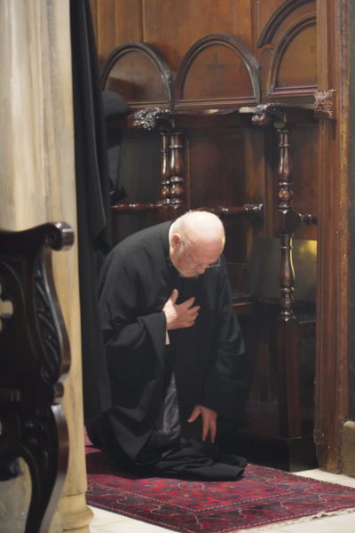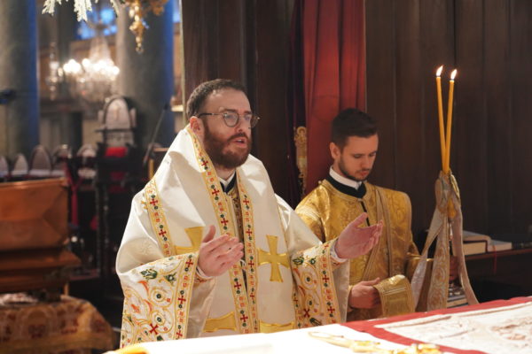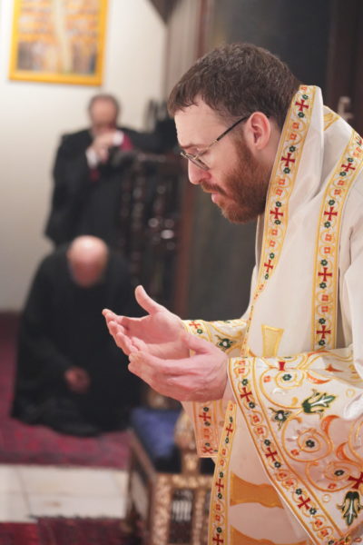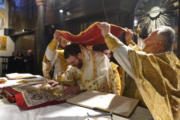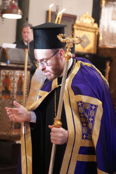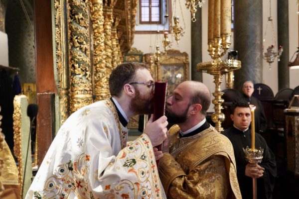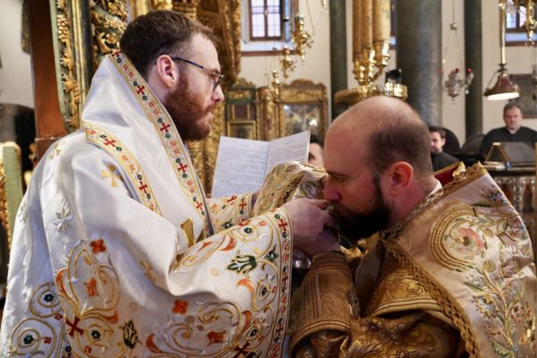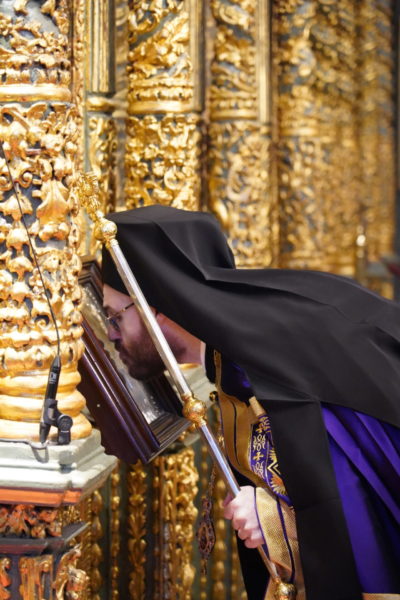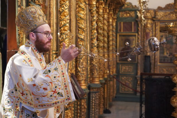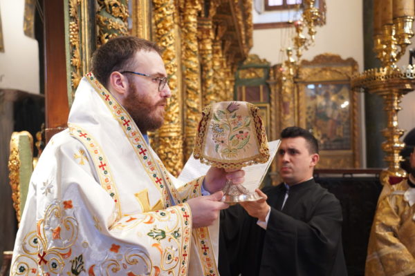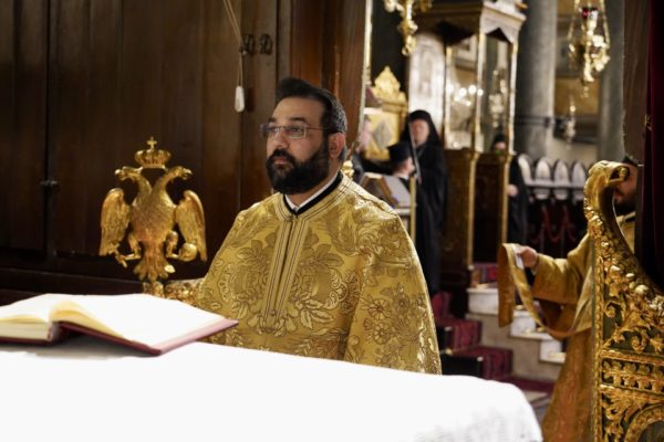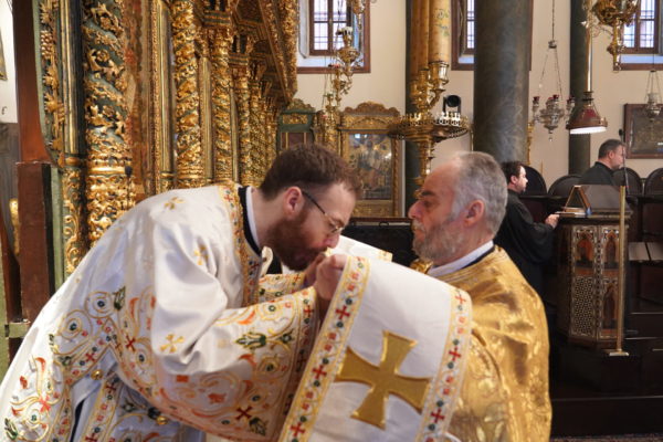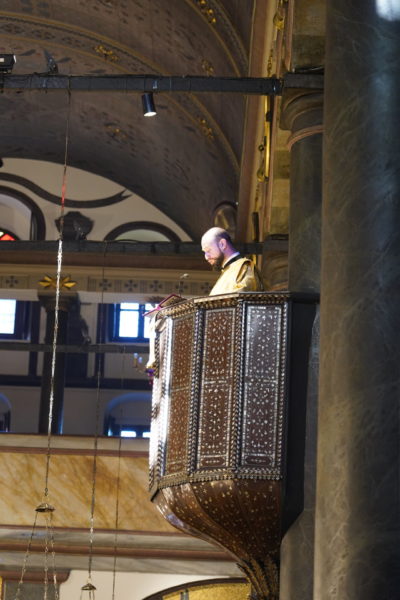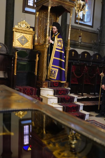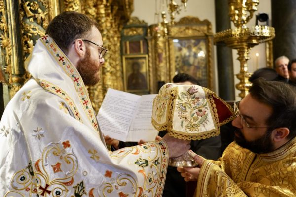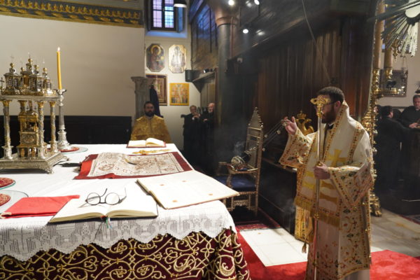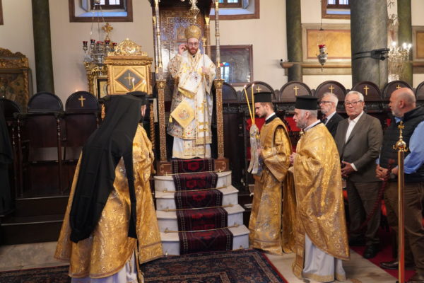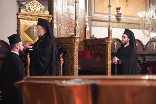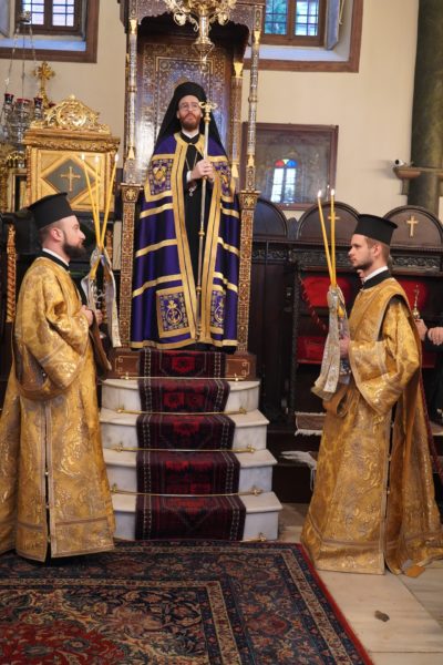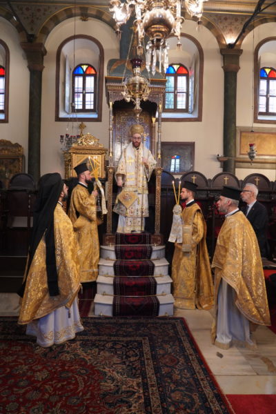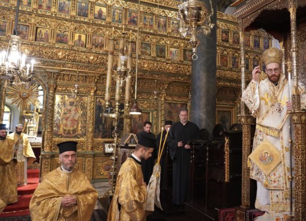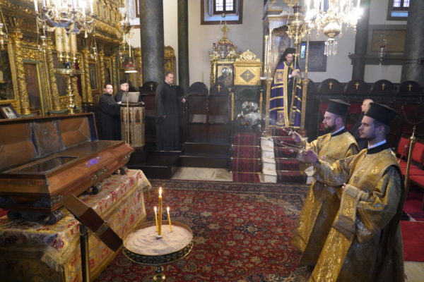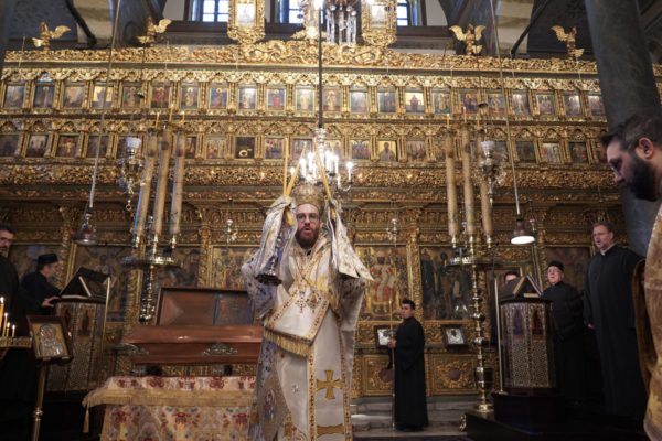 Ο Παναγιώτατος συμπροσευχήθηκε από το ιερό Βήμα. Εκκλησιάστηκαν, επίσης, οι Σεβασμιώτατοι Μητροπολίτες Γέρων Δέρκων κ. Απόστολος, Μύρων κ. Χρυσόστομος, και Προύσης κ. Ιωακείμ, ο Θεοφιλέστατος Επίσκοπος Αμορίου κ. Νικηφόρος, κληρικοί και μοναχές, καθώς και πιστοί από την Πόλη και το εξωτερικό.