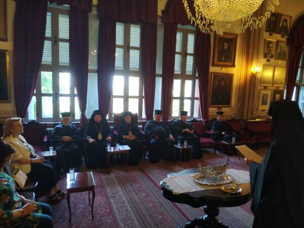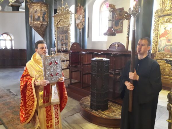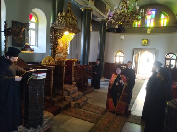 Της Αρχιερατικής Θείας Λειτουργίας προεξήρχε ο Σεβασμιώτατος Μητροπολίτης Γέρων Δέρκων κ. Απόστολος, Πρόεδρος της Εφορείας της Μονής. Παρέστησαν συμπροσευχόμενοι ο Σεβασμιώτατος Πατριαρχικός Εκπρόσωπος, Μητροπολίτης Κυδωνιών κ. Αθηναγόρας, ο Σεβ. Μητροπολίτης Μύρων κ. Χρυσόστομος, Εφοροταμίας της Σχολής, ο Σεβ. Αρχιεπίσκοπος Ανθηδώνος κ. Νεκτάριος, Επίτροπος του Παναγίου Τάφου στην Πόλη και ο Ηγούμενος της Μονής, Θεοφ. Επίσκοπος Αραβισσού κ. Κασσιανός.