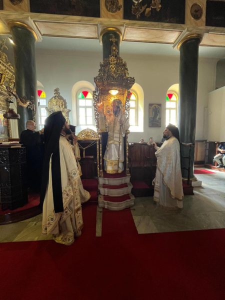 Εκκλησιάστηκαν οι Θεοφιλέστατοι Επίσκοποι Αραβισσού κ. Κασσιανός, Καθηγούμενος της Ιεράς Μονής, και Συνάδων κ. Αντώνιος, ο Πανοσιολ. Αρχιδιάκονος του Οικουμενικού Θρόνου Ιωάννης Χρυσαυγής με όμιλο Καθηγητών που βρίσκονται στην Πόλη για τις εργασίες του Halki Summit VI, ο Άρχων κ. Γ. Στεφανόπουλος, Ομότιμος Καθηγητής του Πανεπιστημίου του Βοσπόρου, καθώς και πολυπληθείς όμιλοι προσκυνητών από την Ελλάδα και την Κύπρο.