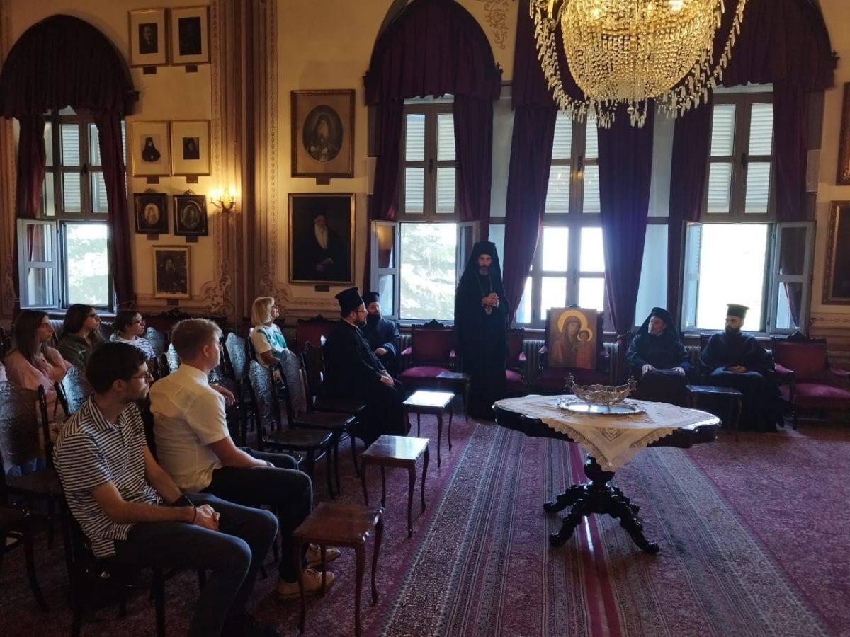 Μετά το πέρας της Θείας Λειτουργίας ακολούθησε δεξίωση στο Μέγα Συνοδικό της Σχολής, κατά την οποία τους παρισταμένους προσφώνησε καταλλήλως ο Καθηγούμενος, ενώ ο Μητροπολίτης Σαράντα Εκκλησιών αναφέρθηκε διά βραχέων στη εορτή της Παναγίας, εκφράζοντας την χαρά του για την παρουσία του στην πανήγυρη.