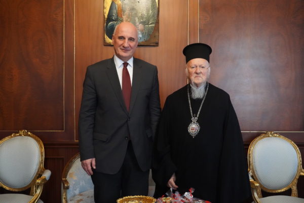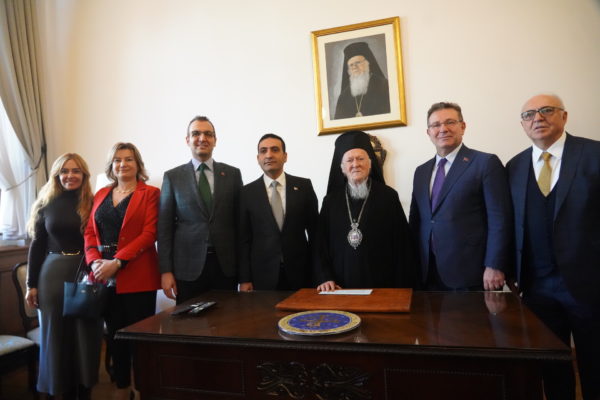 Ακολούθως, ο Οικουμενικός Πατριάρχης δέχθηκε, στον ίδιο χώρο, τις εγκάρδιες ευχές των Εντιμ. Δημάρχων Beyoğlu (Πέρα) κ. İnan Güney, Şişli κ. Resul Emrah Şahan, και Sariyer κ. Mustafa Oktay Aksu, καθώς και του εκπροσώπου του Δήμου Beşiktaş. Στη σύντομη ομιλία που πραγματοποίησε στην τουρκική γλώσσα, ευχαρίστησε αυτούς και τους συνεργάτες τους για την παρουσία τους, υπογραμμίζοντας ότι αυτή δεικνύει πνεύμα ενότητας και αλληλεγγύης. Υπογράμμισε δε ότι επιθυμία του είναι να κυριαρχήσει ανάλογο πνεύμα και στη Μέση Ανατολή, όπου χιλιάδες συνάνθρωποί μας, ιδιαιτέρως παιδιά, ζουν στην σκιά του πολέμου, και απηύθυνε εκ νέου έκκληση για την επικράτηση της ειρήνης.