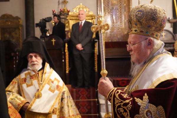 Εκκλησιάστηκαν κληρικοί, αγιορείτες Μοναχοί, εκπρόσωποι χριστιανικών κοινοτήτων της Πόλεως, ο Εξοχ. Πρέσβυς της Ελλάδος στην Τουρκία κ. Θεόδωρος Μπιζάκης, Άρχοντες Οφφικιάλιοι της Μεγάλης του Χριστού Εκκλησίας υπό τον Γενικό Γραμματέα της Αδελφότητός τους “Παναγία η Παμμακάριστος”, Εντιμολ. κ. Κωνσταντίνο Δεληκωσταντή, Άρχοντα Διδάσκαλο του Γένους, ο Γενικός Πρόξενος της Ουκρανίας στην Πόλη, Εντιμ. κ. Roman Nedilskyi, και ο Πρόξενος της Ελλάδος Εντιμ. κ. Θεόφιλος Γεωργάκης, και πλήθος πιστών από την Πόλη και το εξωτερικό.